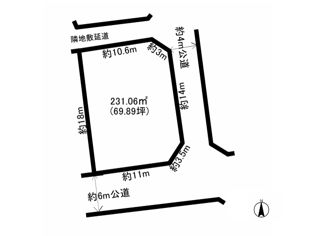 | 道路 | 南側約6m公道、東側約4m公道 |