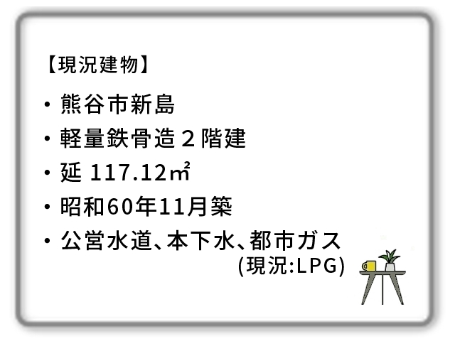 | 備考 | ◎古家付(軽量鉄骨造2階建/117.12m²/S.60.11築)の現況渡し |